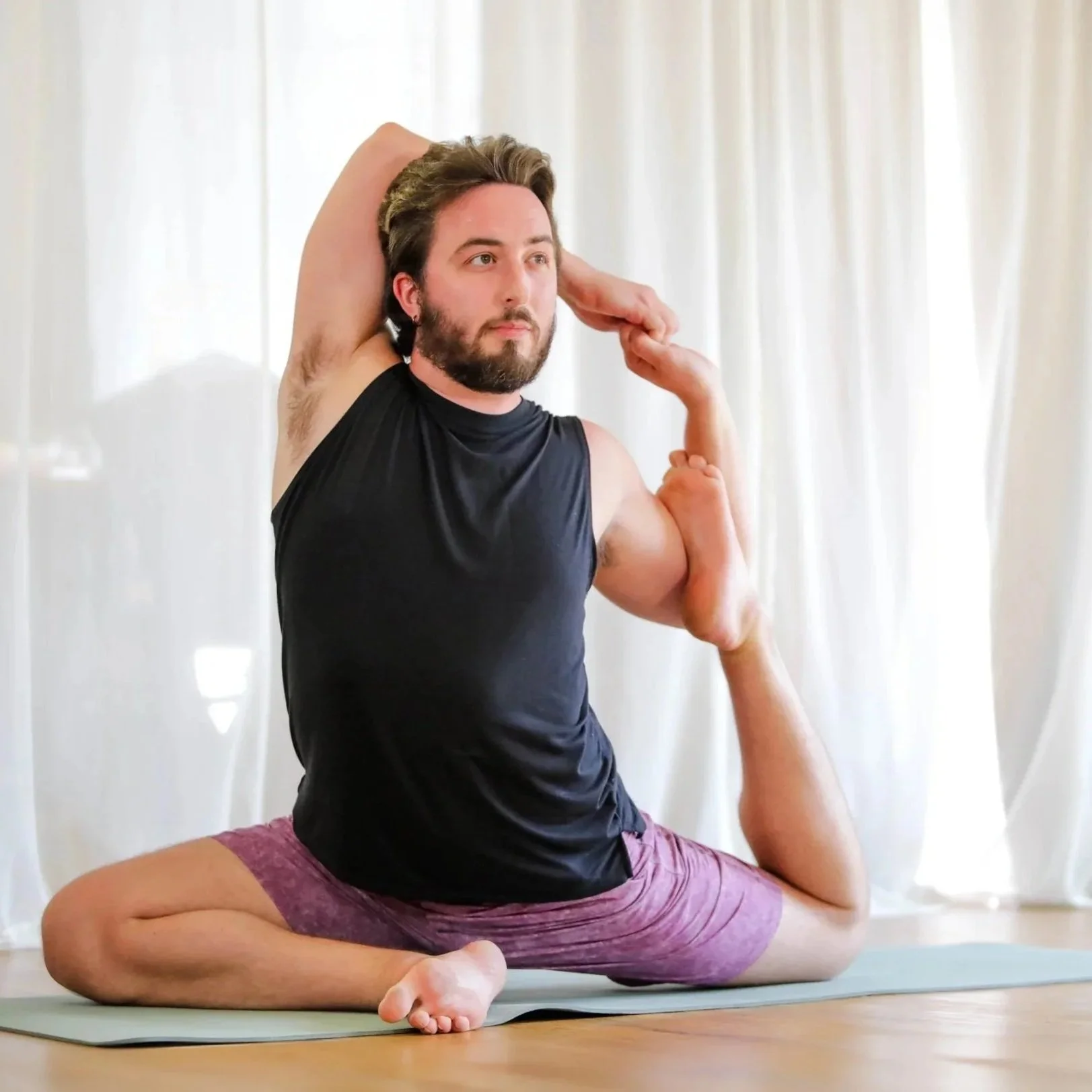 I decided to try yoga at my college gym as a method of stress relief. I didn’t expect much, but quickly learned how beneficial it was in helping me to manage my stress. My instructors encouraged me to begin a training course and soon enough I became an instructor right where I had started my journey. Along the way I discovered an aerial yoga studio in town where I became an apprentice and started developing my own classes there. Aerial yoga has become my happy place to play and decompress my spine all at the same time. It’s such a versatile apparatus and I can hardly imagine my life without it.